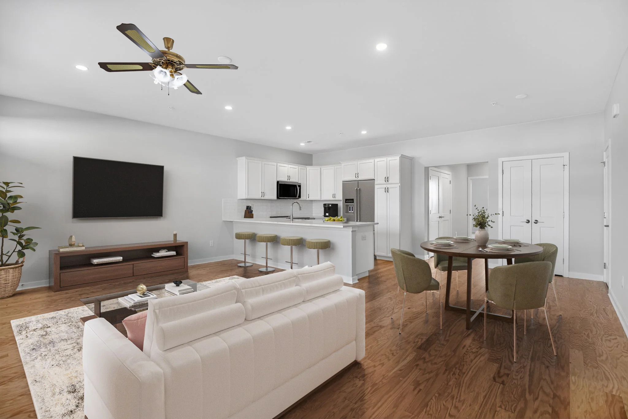 - The DeLuca Standard: While others might call them upgrades, we include premium features like Shaw hardwood flooring, granite countertops, and stainless steel Whirlpool® appliances as standard.